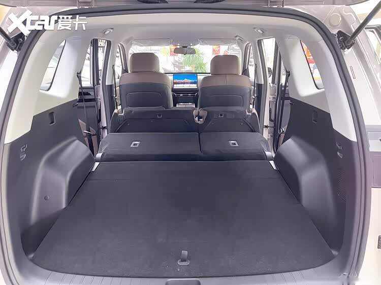 销售小哥还特意给我展示了几个“彩蛋”。比如,他把前排座椅的头枕取掉,靠背往后一放倒,直接就和我坐的后排座椅连成了一张“沙发床”。然后他又把后排坐垫往前一翻,靠背再放倒,后备箱瞬间变成了一个巨大的纯平空间,目测有两米多深,我躺进去试了试,完全能伸直腿。这要是周末带家人去郊游,铺个垫子就能在车里睡个午觉,或者拉个冰箱、自行车这种大件儿,也完全不在话下。