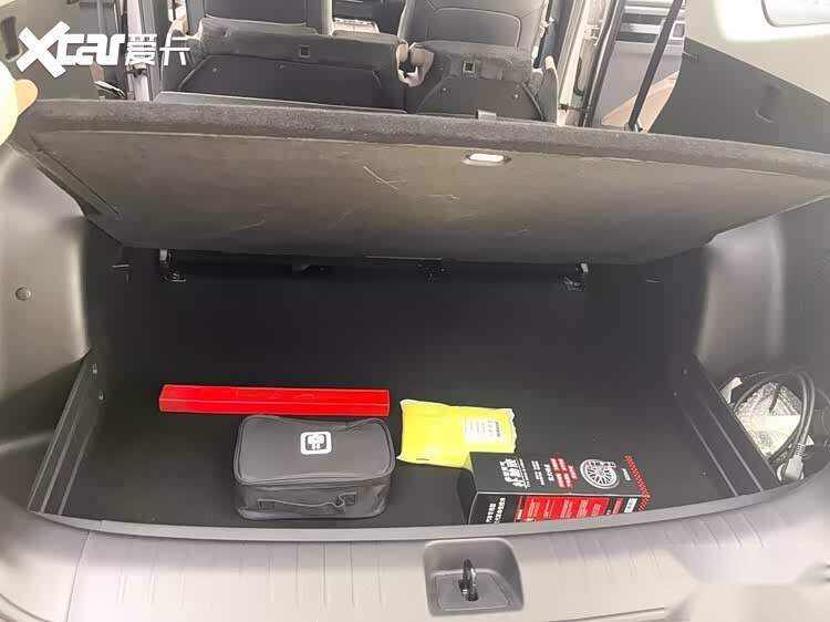 后备箱地板下面还有隐藏的储物格,一些随车工具或者比较私密的东西都能藏在下面,翻开盖板,后备箱又整整齐齐的。这种空间设计,真是把“实用”两个字给琢磨透了。